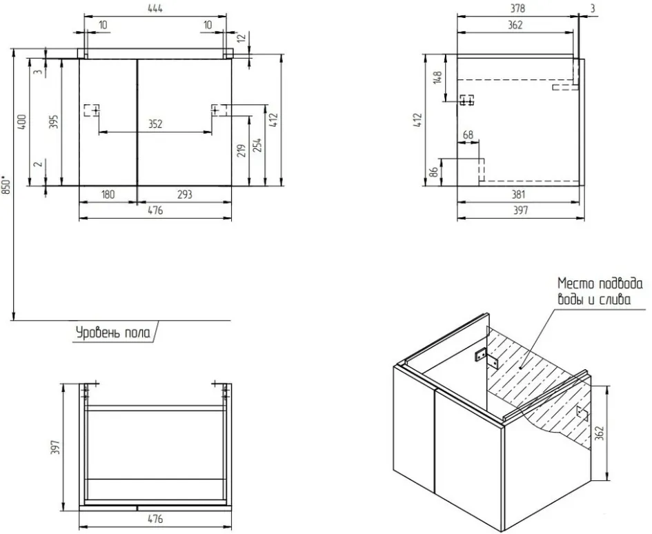 Характеристики товара Тумба-умывальник подвесная Cersanit Colour 50 белый 64257+