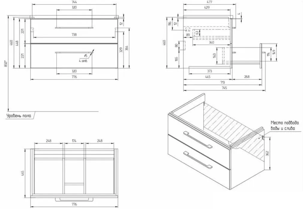 Характеристики товара Тумба-умывальник подвесная Cersanit Lara 80 белый 64137+
