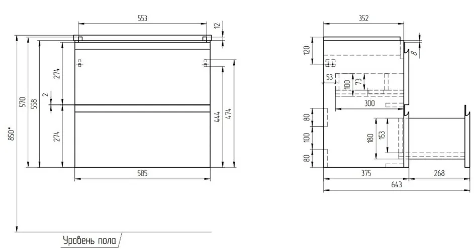 Характеристики товара Тумба-умывальник подвесная Cersanit Moduo Slim 60 белый 64125+S-UM-MOD60SL/1