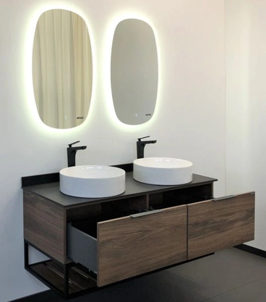 Тумба-умывальник подвесная Comforty Порто 120-2 дуб тёмно-коричневый/чёрный 00-00001287CF