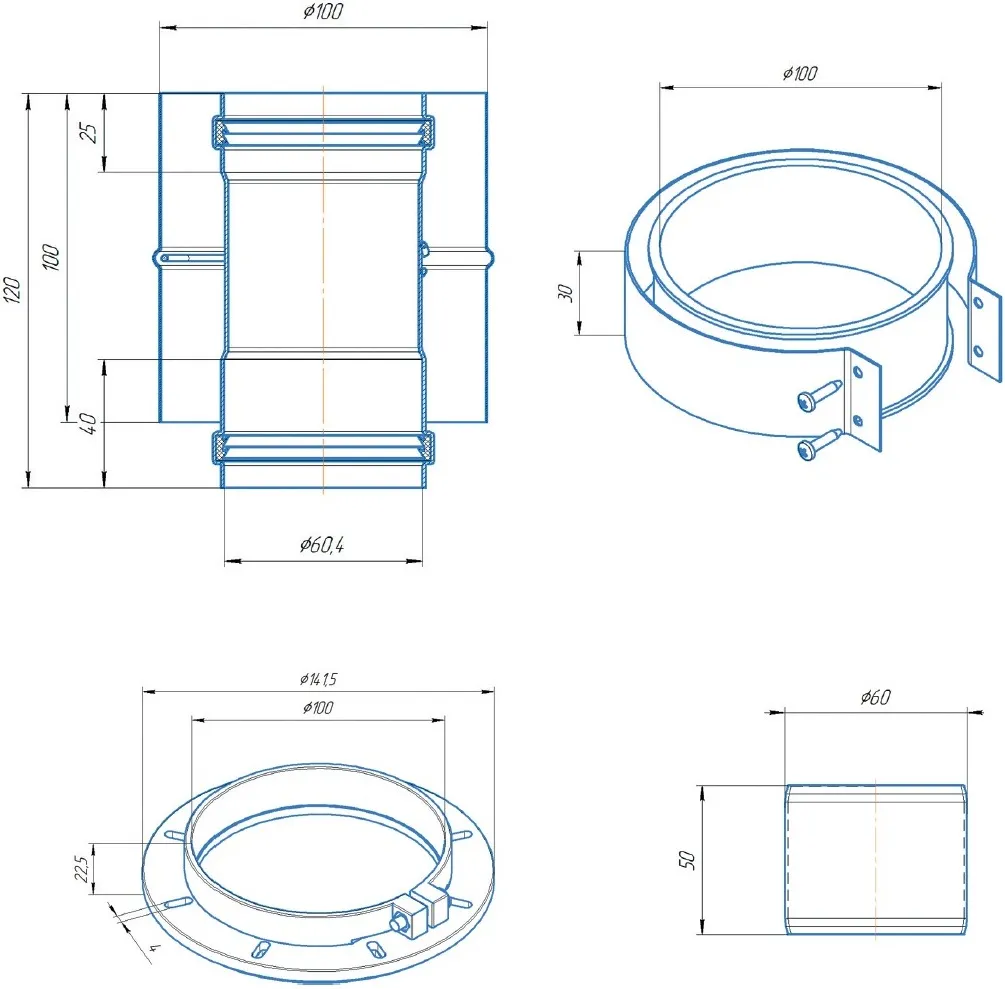Адаптер стартовый коаксиальный Ø 60/100мм (алюм.) Krats VA-01