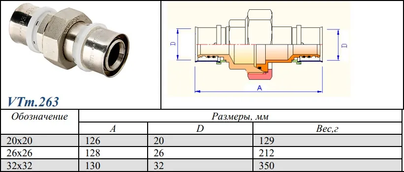 Характеристики товара Американка пресс прямая 26мм Valtec VTm.263.N.002626