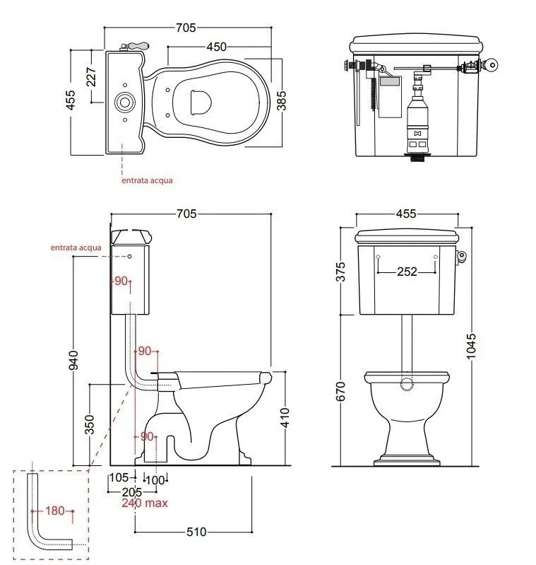 ДОПОЛНИТЕЛЬНАЯ ИНФОРМАЦИЯ(для низкой трубы) для унитаза 1011/1010, с боковым отверстием для ручки, (без трубы и механизма слива)