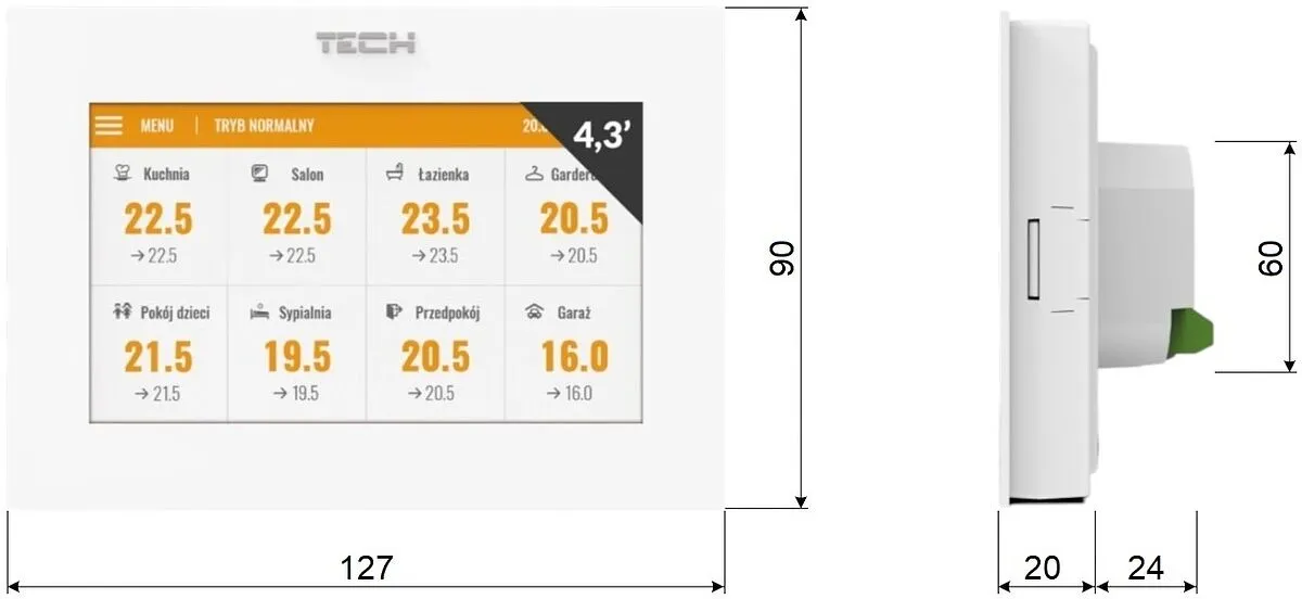 Выносная панель TECH М-8e является терморегулятором, и занимает одну из зон регулирования.