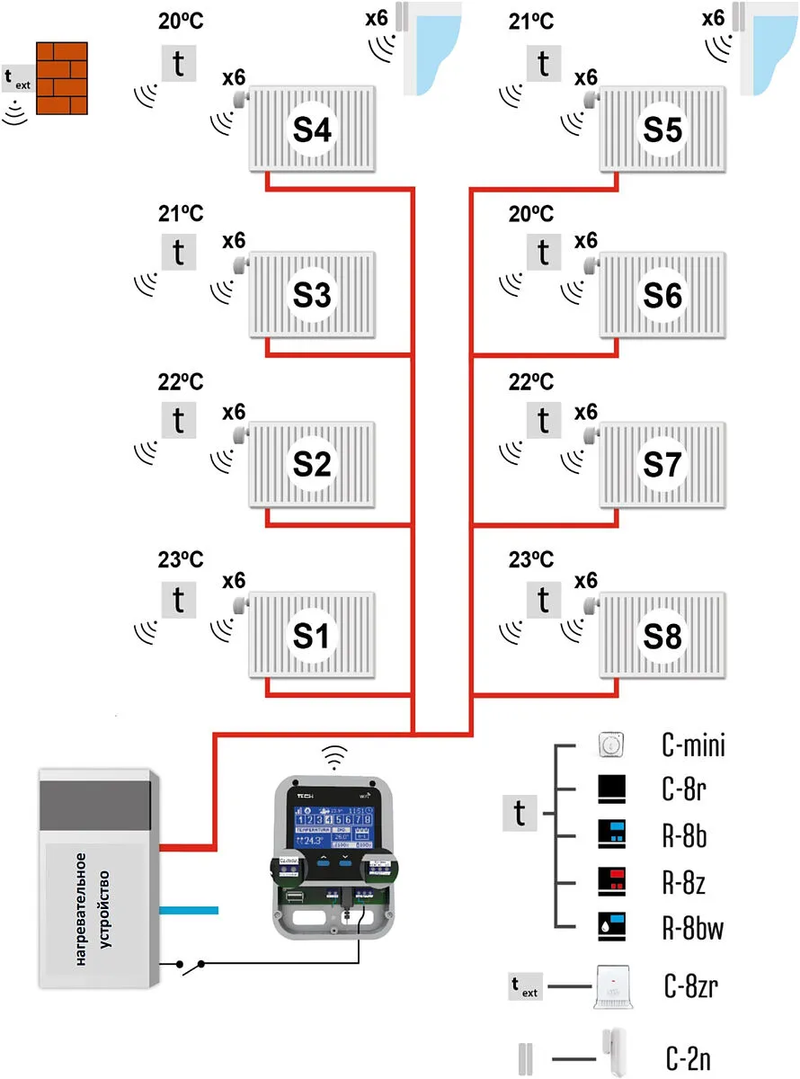 Беспроводной контроллер зонального управления Wi-Fi 8 зон НЗ 230В Stout ST-WIFI 8S белый STE-0101-100080