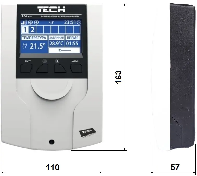 Монтажная планка TECH L-4 WiFi предназначен для напольного и/или радиаторного отопления. Управляет проводными термоэлектрическими и беспроводными электрическими приводами, установленными на термостатических клапанах.