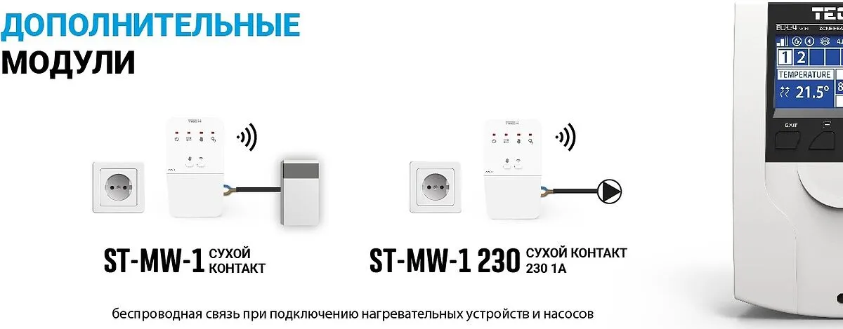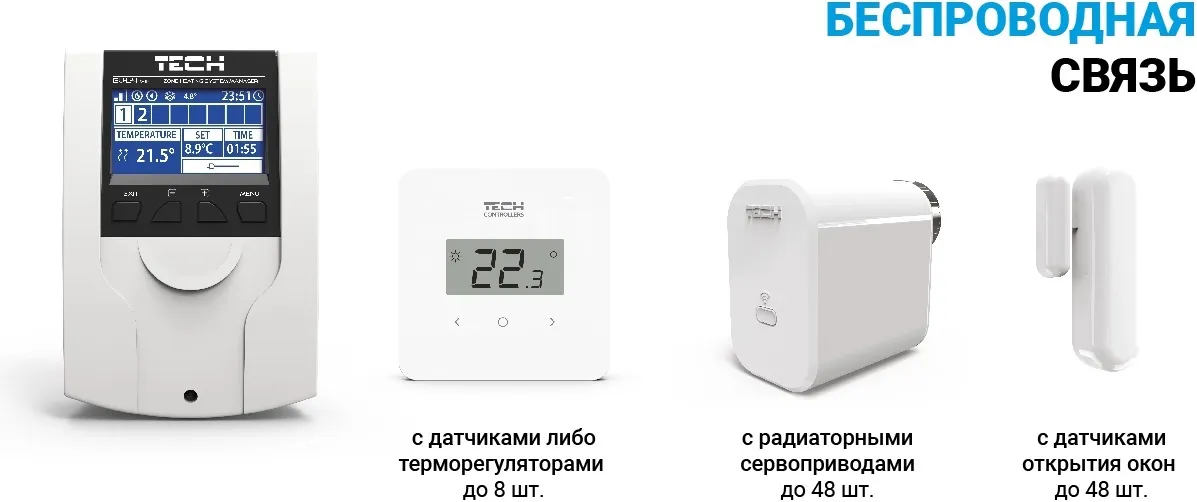 Беспроводная связь - это опция, которая позволяет беспроводным элементам расширения системы соединяться с контроллером TECH L-4 WiFi по радиосигналу.
