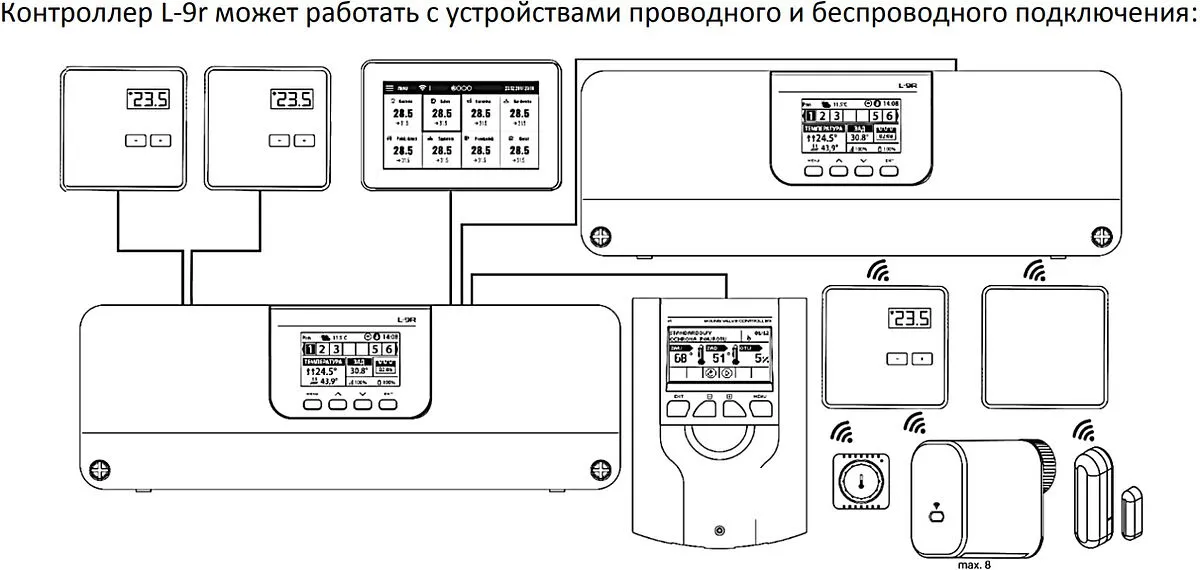 Беспроводной/проводной контроллер 8 зон НЗ 230В Stout L-9r STE-0101-009000