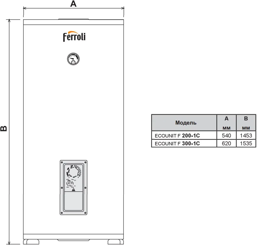 Характеристики товара Бойлер комбинированного нагрева Ferroli Ecounit F 300 1C (45.75 кВт) GRL6310A