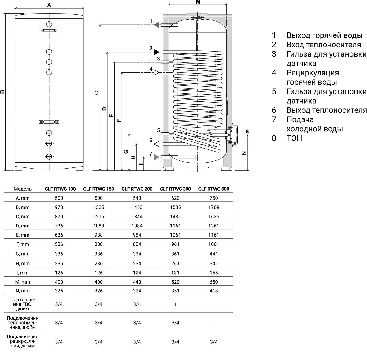 Характеристики товара Бойлер комбинированного нагрева Royal Thermo GLF (100 л, 18 кВт) GLF RTWGE 100