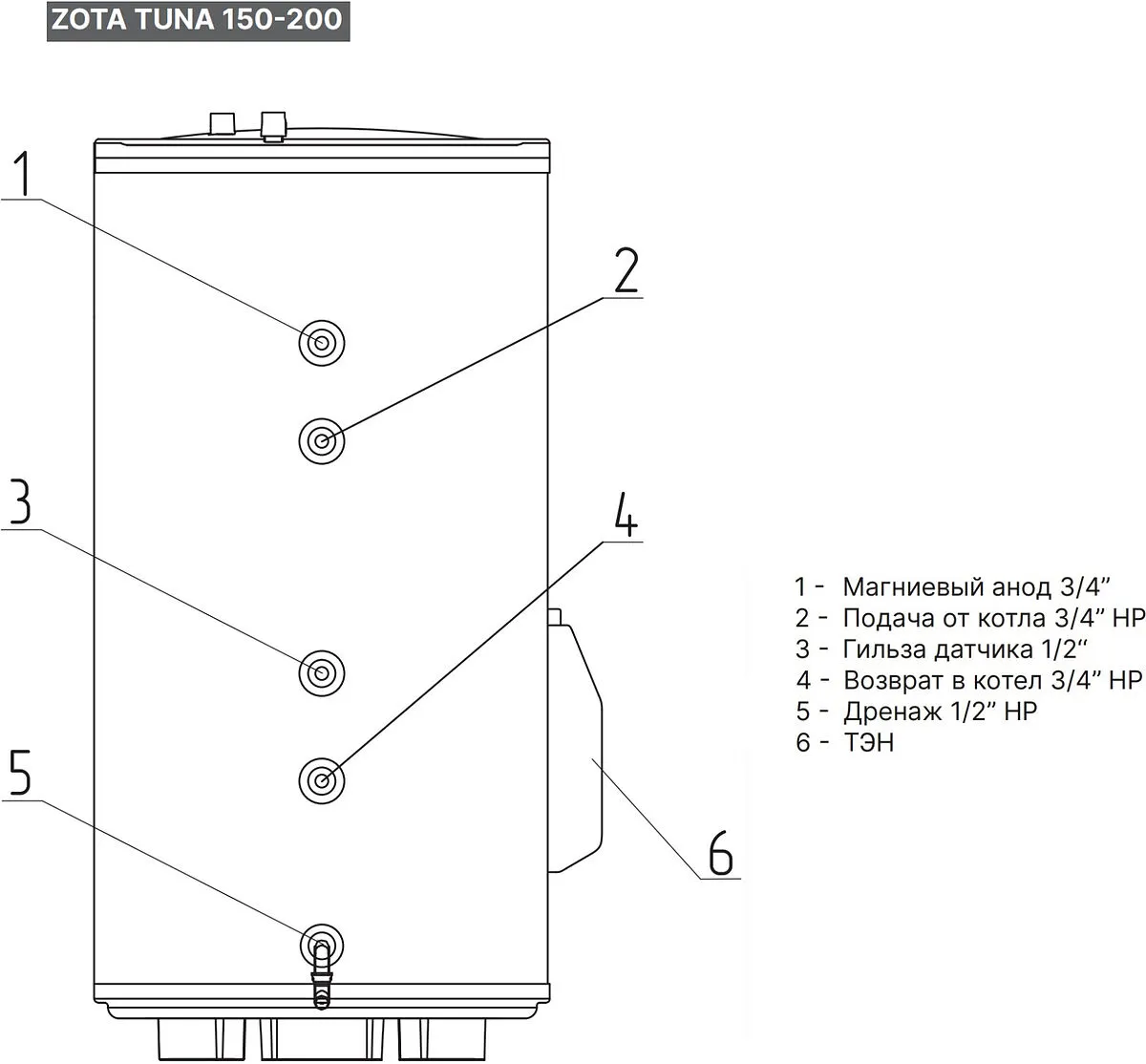 Характеристики товара Бойлер комбинированного нагрева Zota TUNA 200 (17 кВт) ZH3468421200