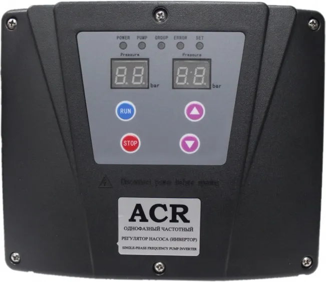 - Регулятор «ACR» - это стабильность и надежность. Он защитит насос от повреждения из-за нехватки воды, короткого замыкания, перегрузки по току, низкого напряжения, высокого напряжения, блокировки ротора.
