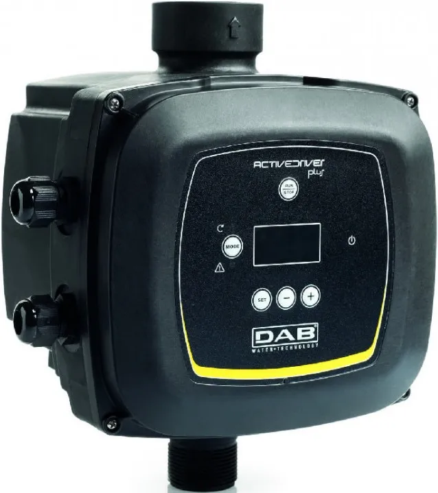 Активный драйвер запускает насос при первом запросе воды. Скорость насоса регулируется (непрерывно) до минимального значения, которое удовлетворяет запрос пользователя. Это позволяет значительно экономить энергию. В группе запуск второго и третьего насосов происходит каскадом, когда первый насос достигает максимальной скорости вращения. Давление регулируется пользователем двумя клавишами + и -, расположенными на Active Driver (di отрегулируйте все насосы установлены на одинаковое значение давления). Насосы автоматически останавливаются в следующих случаях: Перегрузка по току насоса-сухой ход - низкое напряжение питания-превышение максимального значения давления (регулируемое) - Перегрев электронных компонентов Active Driver Plus. Агрегаты с двумя насосами и тремя насосами с Active Driver Plus поставляются в комплекте с защитным коммутатором, содержащим автоматические выключатели защита и клеммная колодка входной линии питания.