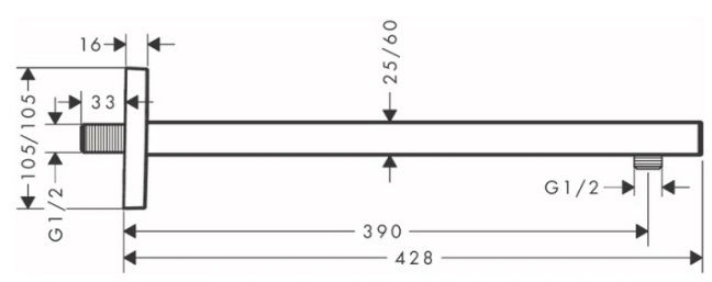 Характеристики товара Держатель верхнего душа на стену Hansgrohe Square 390 шлифованная бронза 27694140