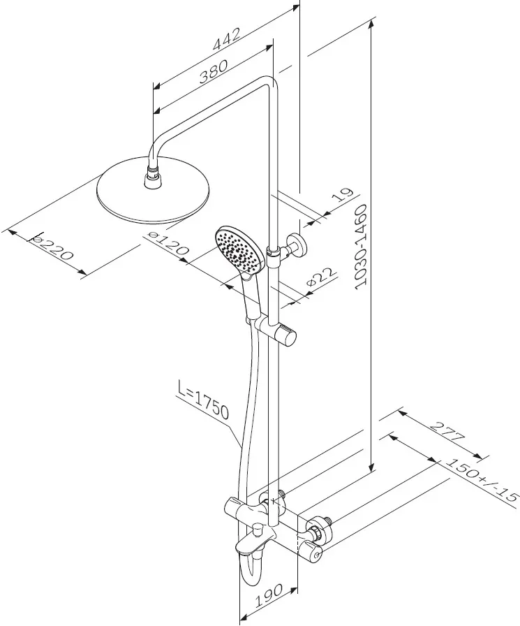 Характеристики товара Душевая система с термостатом для ванны Am.Pm Like чёрный матовый F0780522