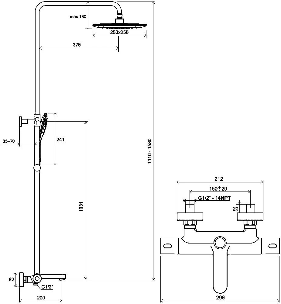 ДОПОЛНИТЕЛЬНАЯ ИНФОРМАЦИЯверхний душ, душевая лейка, термостат, шланг для душа, держатель для душа