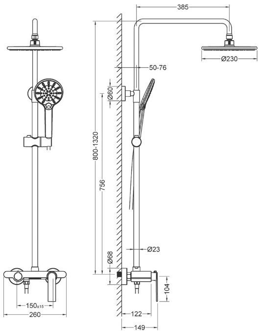 КОМПЛЕКТАЦИЯСмеситель с встроенным изливом - 1 шт. Штанга тропического душа, выдвижная - 1 шт. Тропический душ (пластик) - 1 шт. Крепеж настенный с отражателем - 1 шт. Ручная лейка 2-х режимная (пластик) - 1 шт. Шланг душа 1,5 м - 1 шт. Эксцентриковые соединители - 2