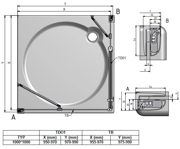 Характеристики товара Душевое ограждение 1000x1000мм прозрачное стекло Roltechnik Tower Line TDO1+TB/1000*1000 724-1000000-00-02+725-1000000-00-02