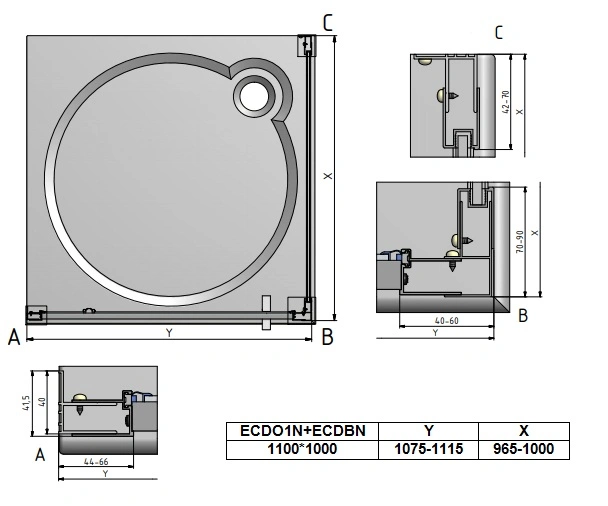 Характеристики товара Душевое ограждение 1100x1000мм прозрачное стекло Roltechnik Exclusive Line ECDO1N+ECDBN/1100*1000 black elox 562-1100000-05-02+563-1000000-05-02