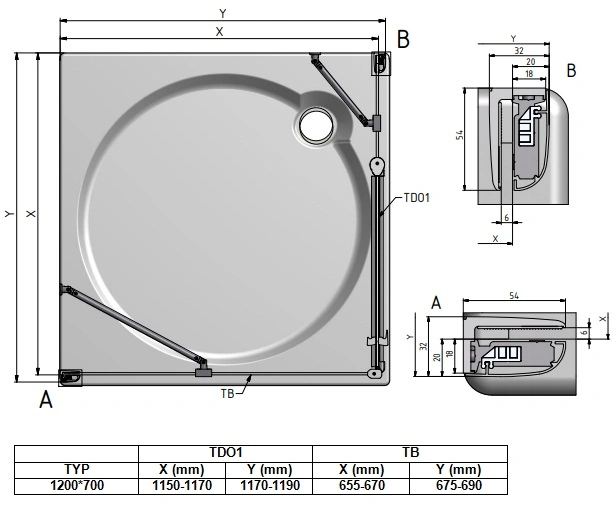Характеристики товара Душевое ограждение 1200x700мм прозрачное стекло Roltechnik Tower Line TDO1+TB/1200*700 724-1200000-00-02+725-7000000-00-02