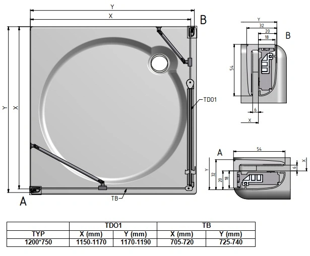 Характеристики товара Душевое ограждение 1200x750мм прозрачное стекло Roltechnik Tower Line TDO1+TB/1200*750 724-1200000-00-02+725-7500000-00-02