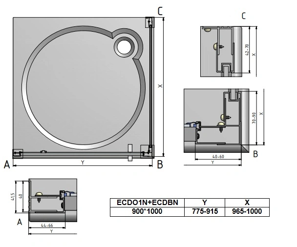 Характеристики товара Душевое ограждение 900x1000мм прозрачное стекло Roltechnik Exclusive Line ECDO1N+ECDBN/900*1000 black elox 562-9000000-05-02+563-1000000-05-02