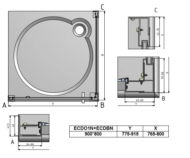 Характеристики товара Душевое ограждение 900x800мм прозрачное стекло Roltechnik Exclusive Line ECDO1N+ECDBN/900*800 black elox 562-9000000-05-02+563-8000000-05-02