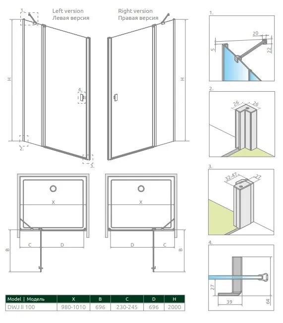 Характеристики товара Дверь в нишу 1000мм прозрачное стекло Radaway NES DWJ II 90 L 10036100-01-01L