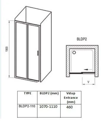 Характеристики товара Дверь в нишу 1100мм прозрачное, матовое стекло Ravak Blix BLDP2-110 0PVD0U00ZG