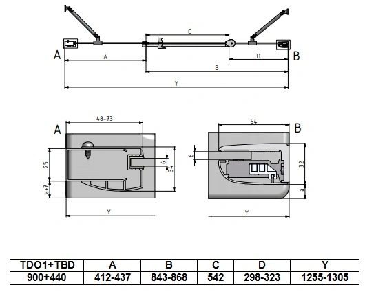 Дверь в нишу 1300мм прозрачное стекло Roltechnik Tower Line TDO1+TBD/900*440 724-9000000-00-02+744-0380000-00-02