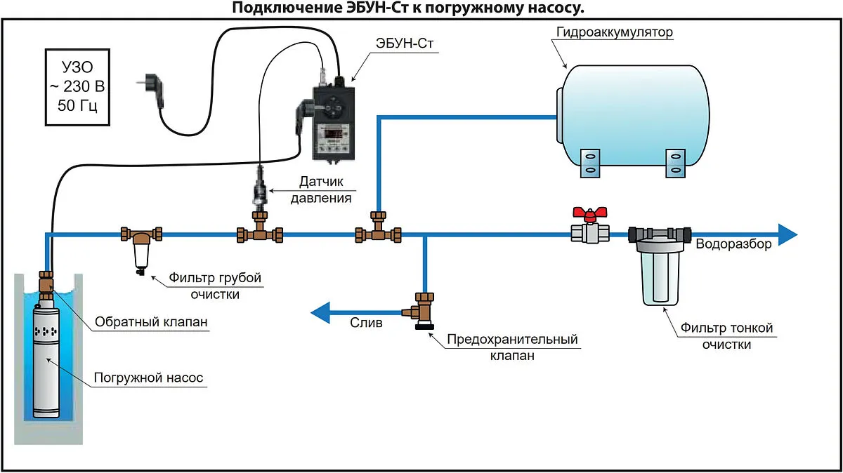Внимание! ЭБУН не предназначен для управления насосами, имеющими встроенный плавный пуск, частотный преобразователь или электронные системы защиты.