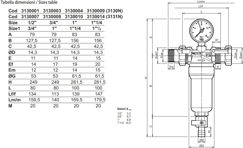 Характеристики товара Фильтр тонкой очистки воды ¾"в/1"н x ¾"в/1"н Tiemme 3131N 3130008