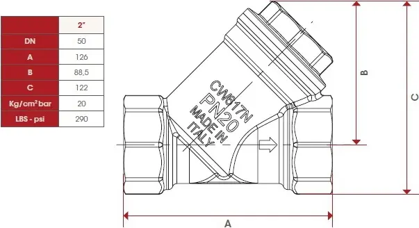 Фильтр угловой сетчатый 2"в x 2"в Itap 1920200