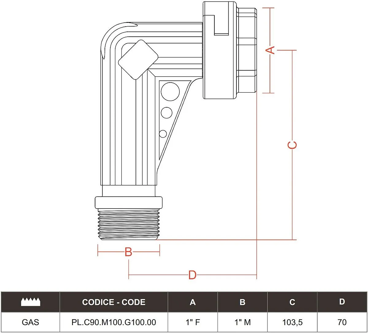 Фитинг угловой Italtecnica 1"н х 1"нг FIT.PL.C90.M100.G100.00