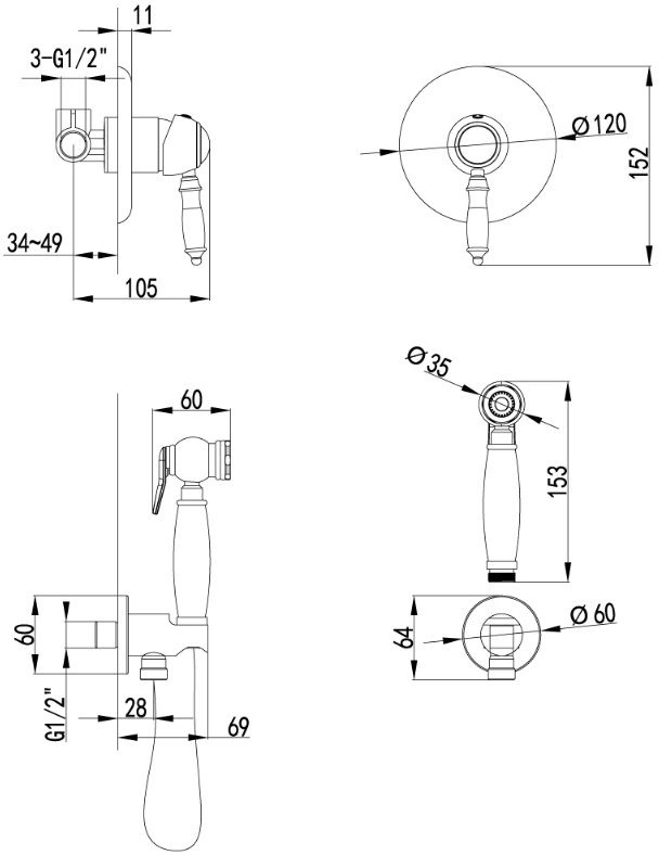 КОМПЛЕКТАЦИЯдушевой шланг, душевая лейка, настенное крепление