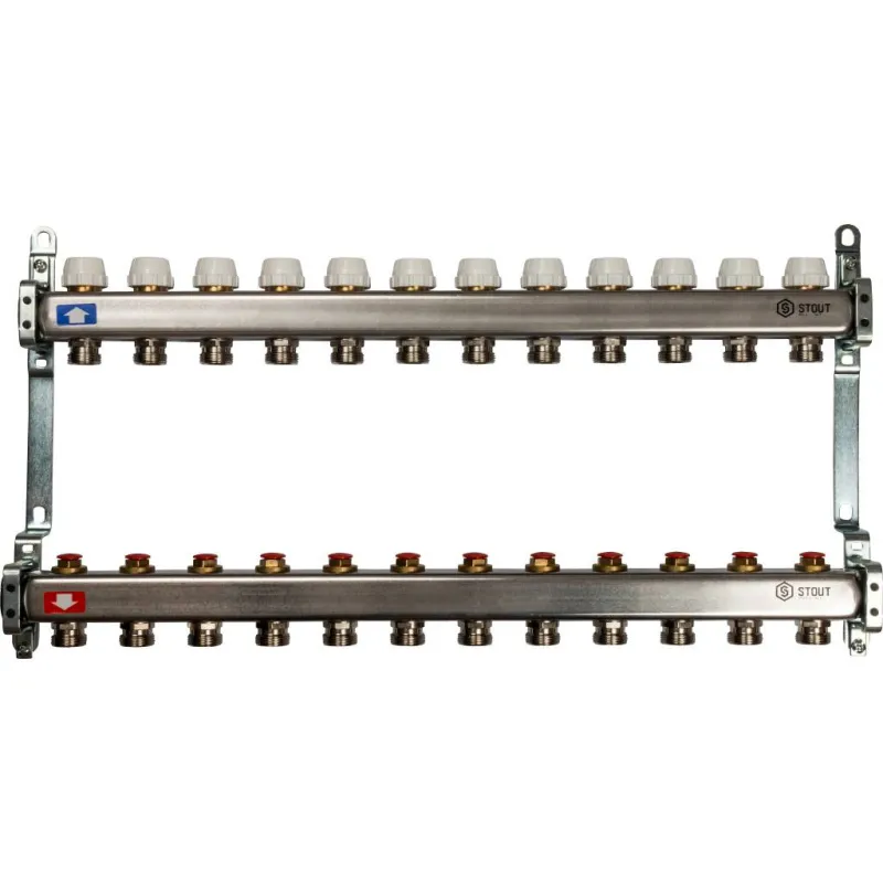 Характеристики товара Группа коллекторная без расходомеров 12 отводов 1"в/в x ¾"ек Stout SMS 0922 000012