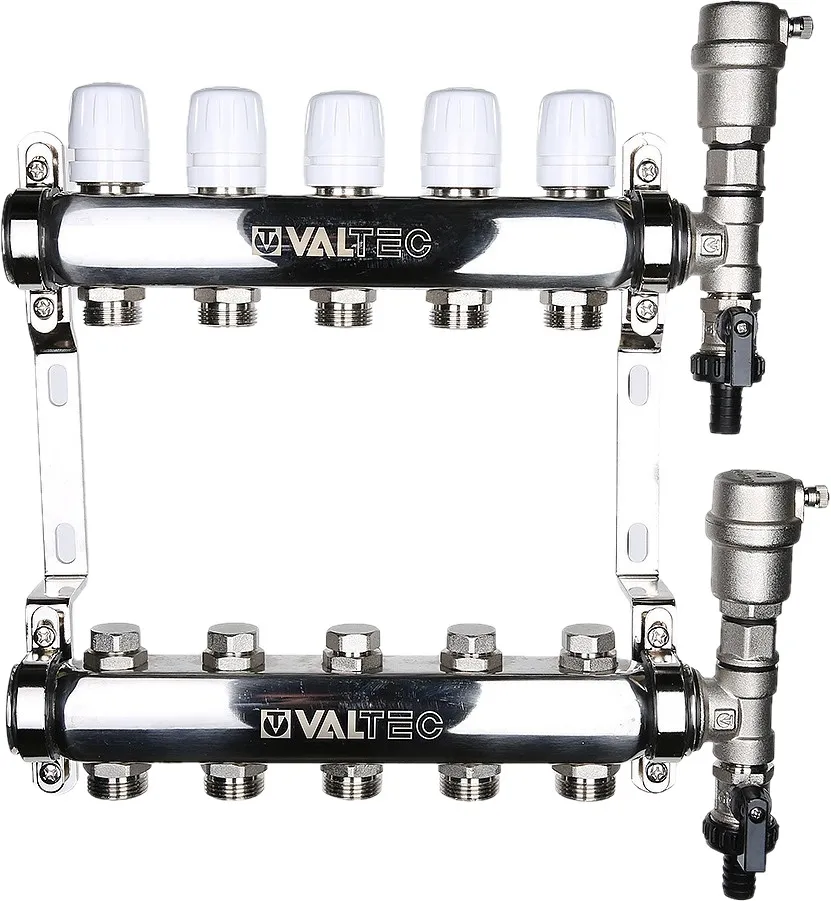 Характеристики товара Группа коллекторная без расходомеров 3 отвода 1"в/в x ¾"ек Valtec VTc.588.EMNX.0603