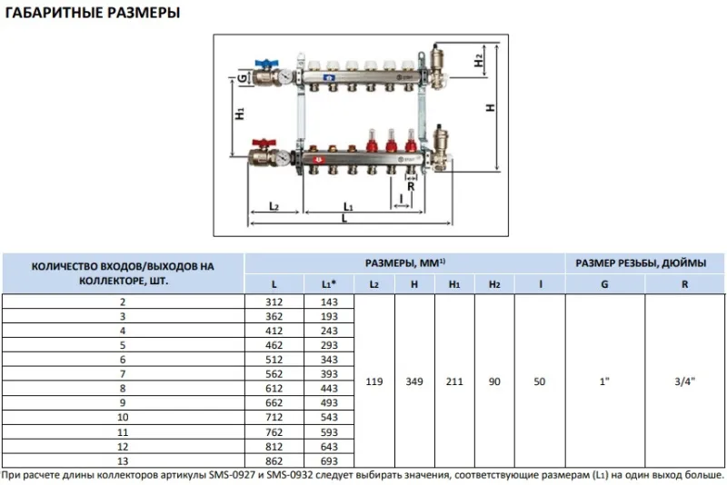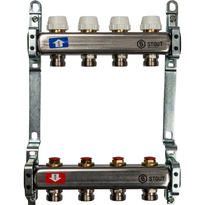 Характеристики товара Группа коллекторная без расходомеров 4 отвода 1"в/в x ¾"ек Stout SMS 0922 000004
