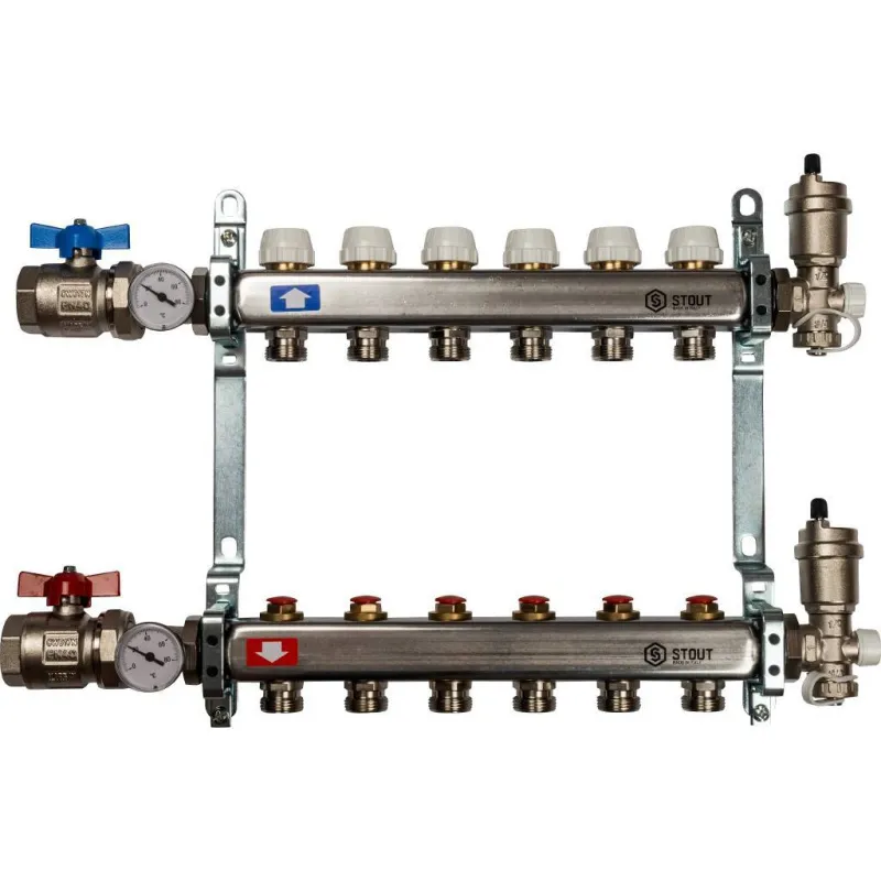 Характеристики товара Группа коллекторная без расходомеров 6 отводов 1"в/в x ¾"ек Stout SMS 0912 000006