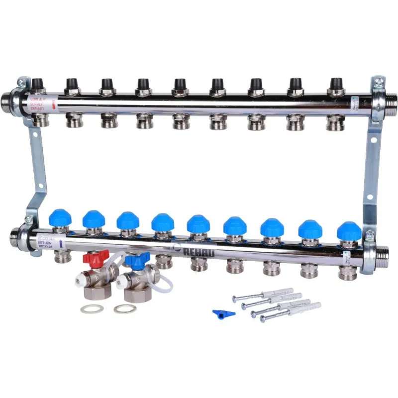 Группа коллекторная без расходомеров 9 отводов 1"н/н x ¾"ек Rehau HKV 12180911001