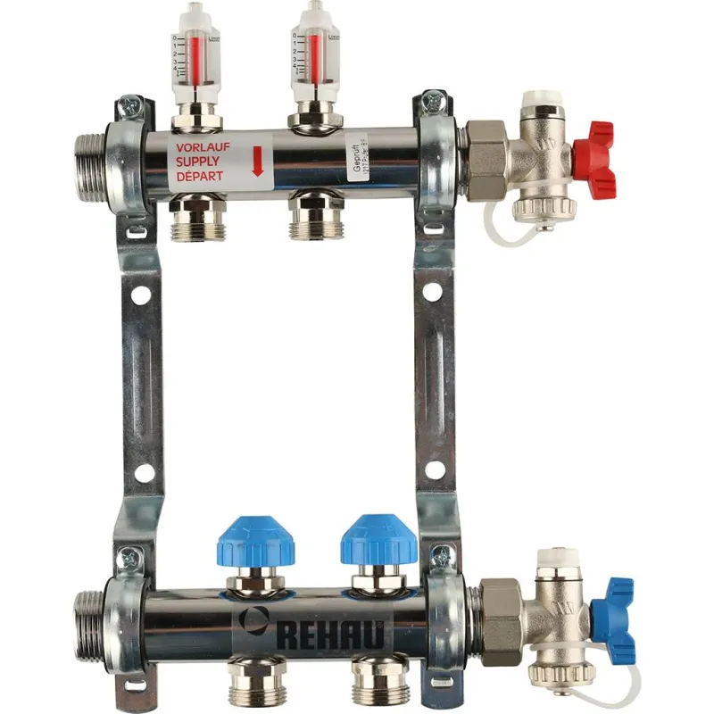 Характеристики товара Группа коллекторная с расходомерами 2 отвода 1"н/н x ¾"ек Rehau HKV-D 12080211002