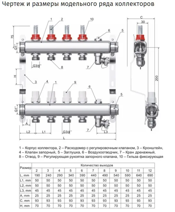 Назначениедля распределения потока транспортируемой среды систем напольного/потолочного отопления и охлаждения