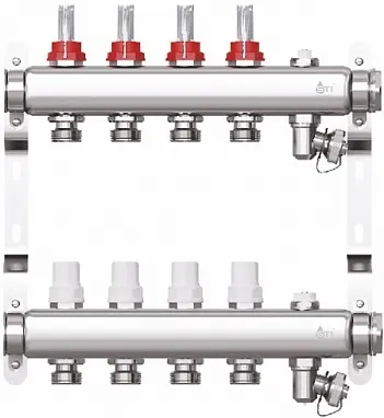 Характеристики товара Группа коллекторная с расходомерами 4 отвода 1"в/в x ¾"ек STI CM04F