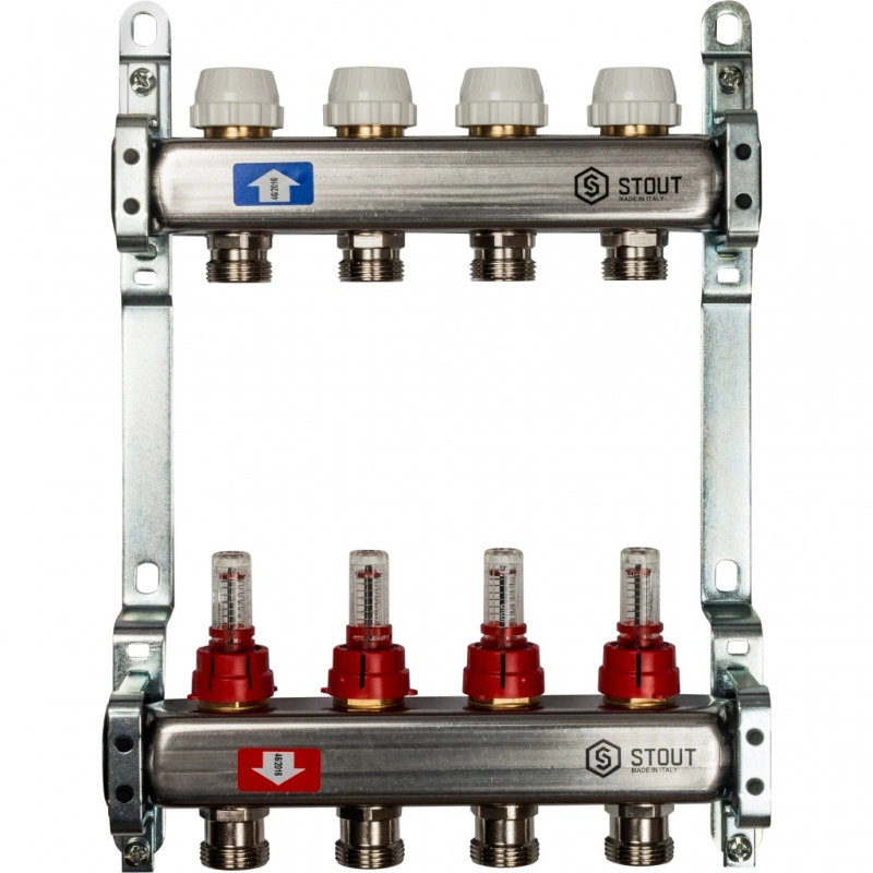 Группа коллекторная с расходомерами 4 отвода 1"в/в x ¾"ек Stout SMS 0917 000004