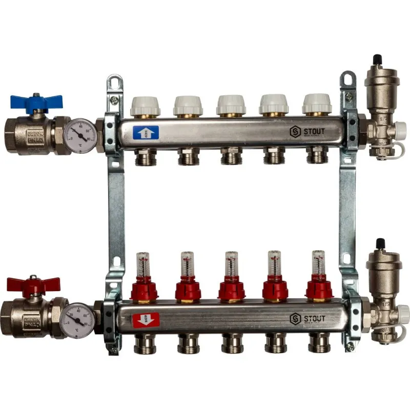 Характеристики товара Группа коллекторная с расходомерами 5 отводов 1"в/в x ¾"ек Stout SMS 0907 000005
