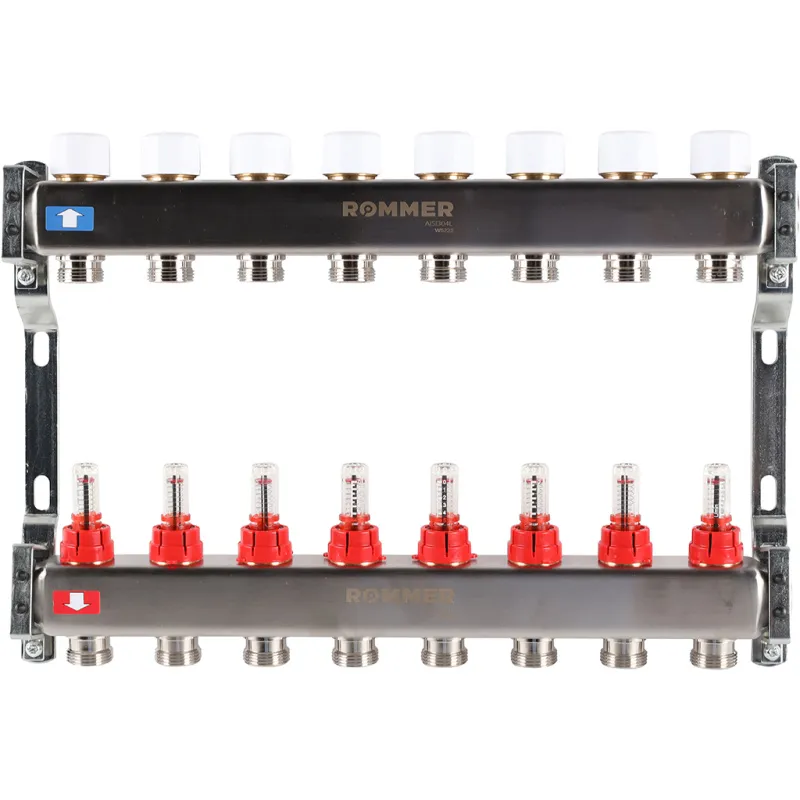 Группа коллекторная с расходомерами 8 отводов 1"в/в x ¾"ек Rommer RMS-1200-000008