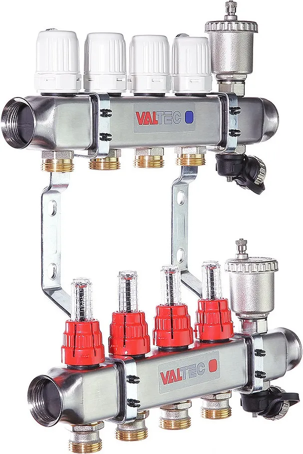 Характеристики товара Группа коллекторная с расходомерами 9 отводов 1"в/в x ¾"ек Valtec VTc.586.EMNX.0609