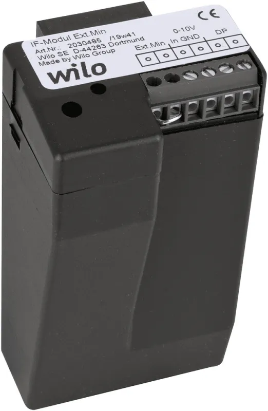 Вставной модуль дооснащения IF-Modul Stratos Ext. Min для типов насосов Wilo-Stratos/Stratos-Z/Stratos-D. Управляющий вход мин (работа с понижением без функции Autopilot). Управляющий вход 0 – 10 В (дистанционное переключение частоты вращения или заданного значения дистанционного регулирования) для подсоединения к автоматизированной системе управления зданием. Управление сдвоенными насосами (в зависимости от времени, нагрузки и при неисправности) с возможностью передачи данных. Для управления двумя циркуляционными насосами или одним сдвоенным насосом при переменном режиме или при режиме совместной работы двух насосов дополнительно требуется IF-модуль Stratos PLR.