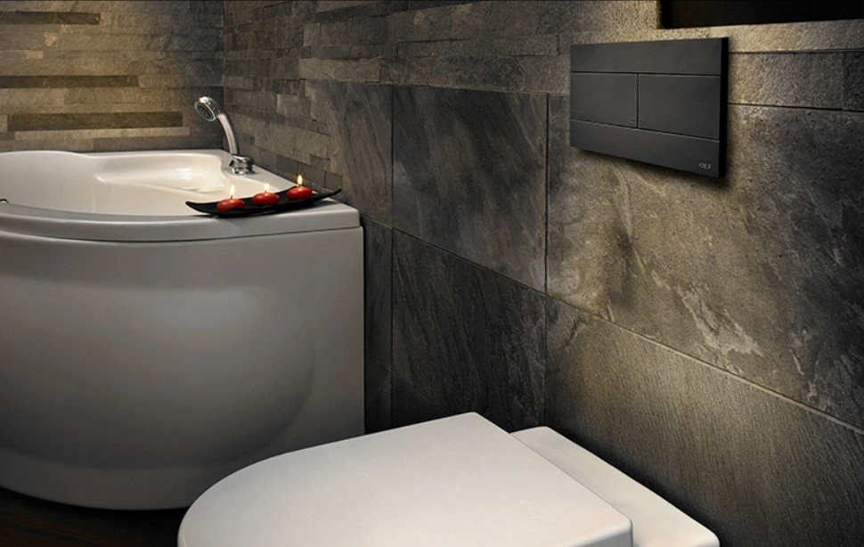 Характеристики товара Клавиша смыва для унитаза OLI Slim 886040 черный матовый
