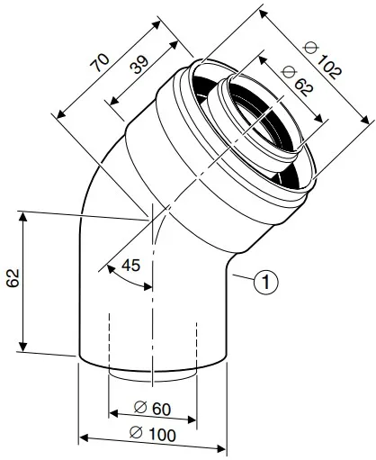 Колено для дымохода Ø 60/100мм ∠ 45° (Al) Buderus 7736995071